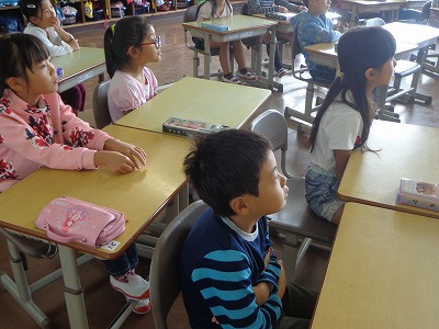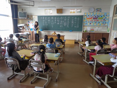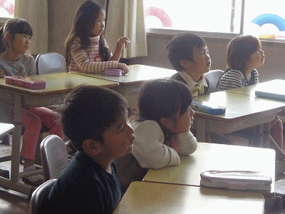 1年生も漢字を学んだので、漢字コンクールを実施します。先生のポイントチェックをしっかりと聞いて確認しています。いよいよ本番です。