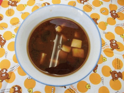 今日の献立は、わかめと豆腐のみそ汁、鶏肉のてりかけ、ゆかりあえ、発芽玄米ごはん、牛乳です。発芽玄米を食べるのが初めてという子もいるかもしれませんね。