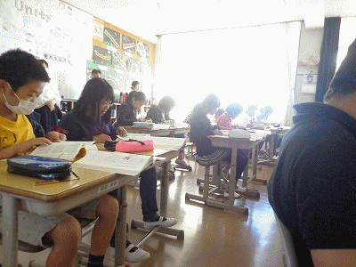 4年生は算数、5年生は国語、たんぽぽ組は図工です。集中してがんばりました。