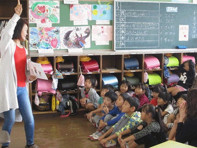 "We're Going on a Bear Hunt" 同じリズムの繰り返しで、だんだんお話に引き込まれていきました。単語を聞き取っていた子もいました。子どもたちは、何でも吸収できますね。英語での読み語りは今日が最後です。