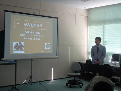 今日の学校保健委員会は、校医の大竹ニコニコクリニック院長、大竹一生先生を講師として「がん」について学習しました。子どもたちにとって、とても有意義な時間となりました。ありがとうございました。