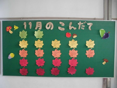給食室前に掲示してある「11月の献立」も紹介します。