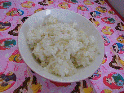 献立は、トックスープ、ビビンバ、発芽玄米ごはん、牛乳です。トックは韓国のお餅ですね。発芽玄米は、玄米を発芽(出芽)させた米で、白米と比較して栄養価が高い玄米を食べやすく加工したものです。発芽させている部分が、少し黄色くなっています。
