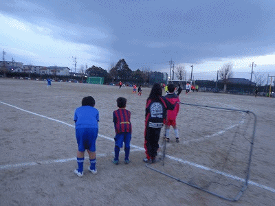 グランドコンディションが悪いのでコート半分で4対4です。日の入り間近。明日はリーグ戦なので気合が入っています。
