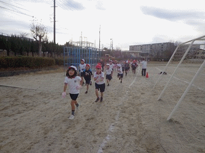 いよいよ今週はマラソン大会です。準備運動にも気合が感じられます。再任用の0先生も軽快にランニングしていますね。