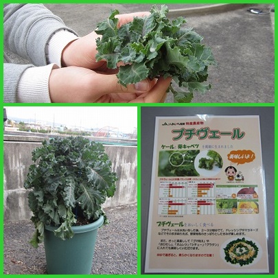 市内全小学校に、いただきました。栄養価が高く、栽培に力を入れている野菜だそうです。お日様によく当たると、甘くなるとのこと。今のところ、職員室前に置いてあります。