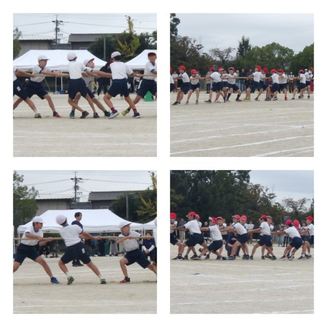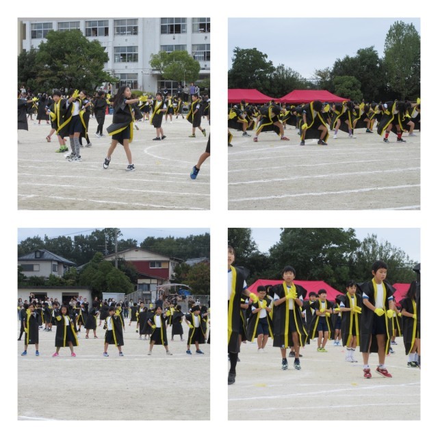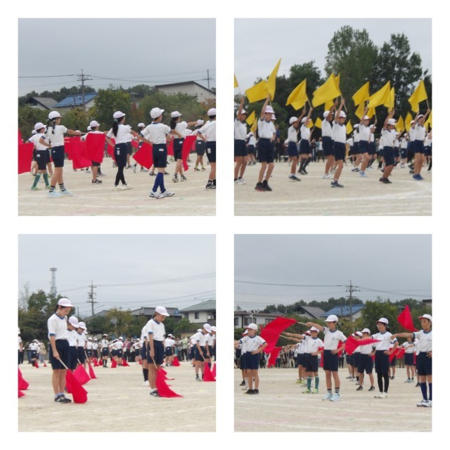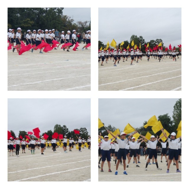 競遊「綱引き」、全員リレー、表現「輝け」ではフラッグを使った演技を披露しました。チームの団結力を発揮し、迫力ある競技や真剣な表情で会場を大いに盛り上げました。高学年らしい堂々とした姿に、頼もしさを感じました。