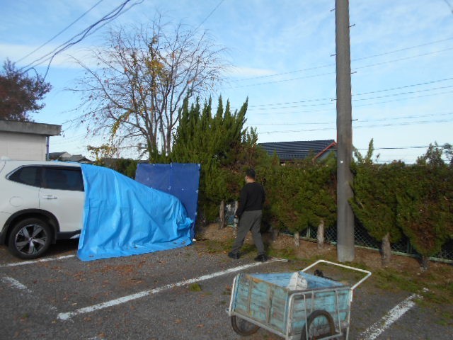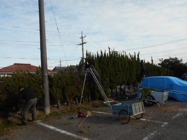 11月24日(月)におやじの会(元保護者の方が中心)や保護者の方がカイヅカイブキの伐採・剪定作業を行ってくださいました。