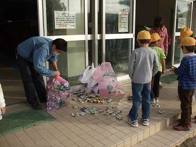 3日間で13袋(缶をつぶして)を集めることができました。集まった缶は,4年生が音楽会に参加するときに文化センターに運びました。