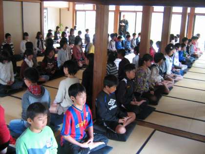 いくつか写真を載せます。まず、新幹線の中、建仁寺での座禅の様子です。座禅はとても静寂な雰囲気の中で真剣に行えました。