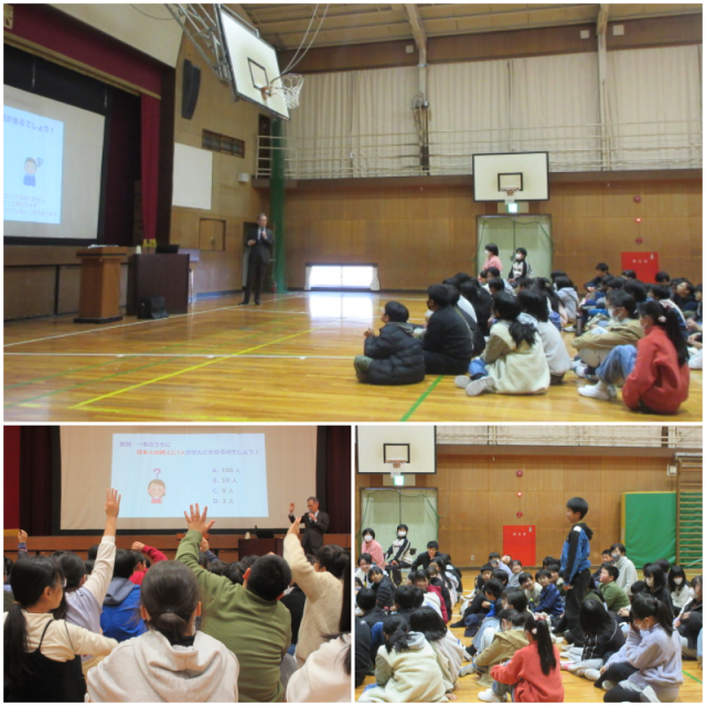 6年生が、公立陶生病院の澤田先生をお迎えして、がんについてのお話を聞きました。