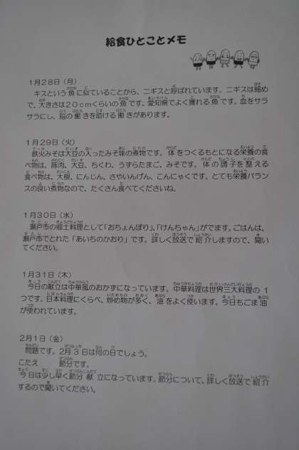 また、週末3日は節分です。そのため1日の献立も節分献立です。これまた楽しみですね。