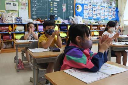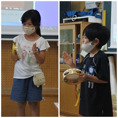 緊急事態宣言中は、大きな声で歌うことや鍵盤ハーモニカ、リコーダーの演奏は控えています。飛沫が飛ばない、打楽器の演奏を行うことが多くなります。