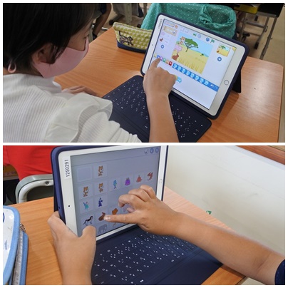 子どもたちが、実際にプログラムを組んで、動かした様子です。