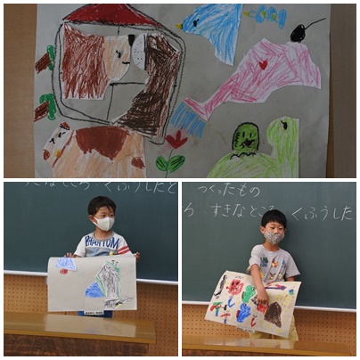 1年生は、図工の時間に作った作品の発表会を行いました。