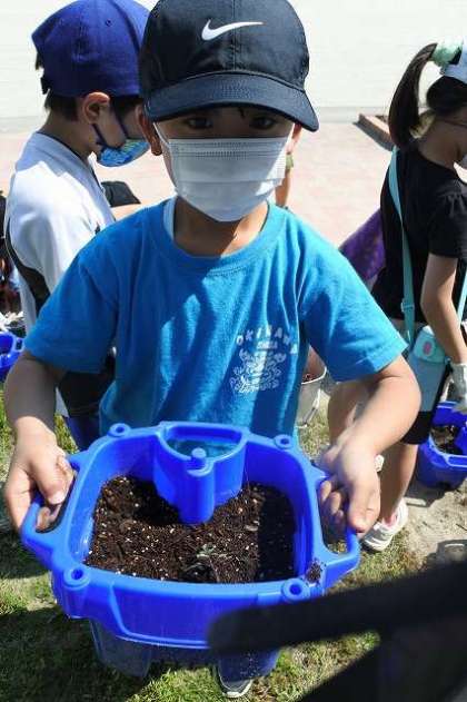 2年生がタネから育ててきたミニトマトは順調に発芽しました。