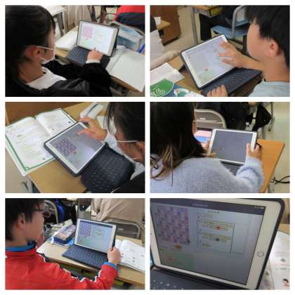 今日は、ICT支援員さんに教えていただきながら、条件に合う整数をみつけるプログラムをつくりました。