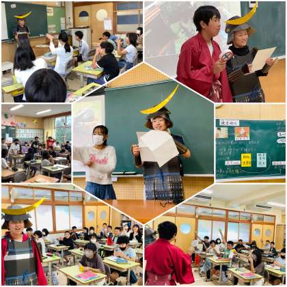 授業では武士になりきった児童が、勇ましい「名乗り」を披露したり、歴史クイズで皆を楽しませたりと活躍してくれました。