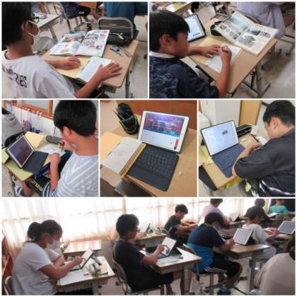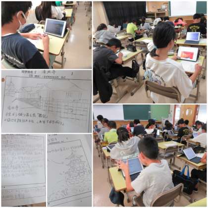 運動会で大活躍だった6年生。次は修学旅行に向けて活動開始です。清水寺、鹿苑寺、奈良公園・・・。仲間と過ごす修学旅行の二日間が、より充実したものになるように、資料集や本やタブレットを使って今からしっかりと見学するお寺や名所の調べ学習をしています。