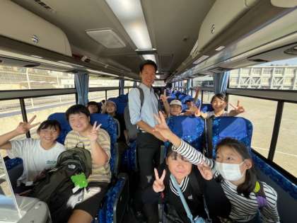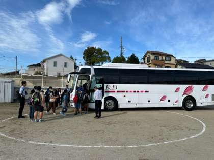 バスの配車が予定より遅れたものの、元気に出発できました。