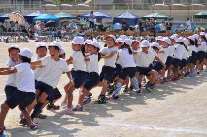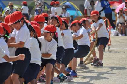 ソーレ、ソーレ、2年生の競遊は綱引きです。心と力を合わせて引っ張りました。