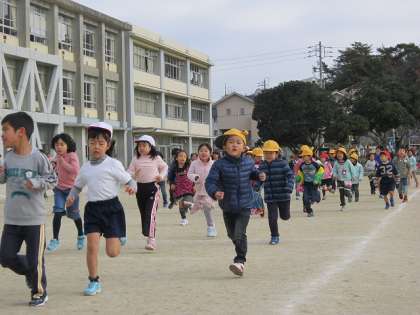 今日は、1,3,5年が「走れ!東山っ子」でした。本校は人数が多いので、全校で走ることができず、半分ずつ一日交替で走ります。1年生もがんばっています。