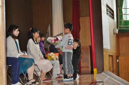 今日は離任式でした。お世話になった先生に、ありがとうの気持ちをこめて、お別れしました。