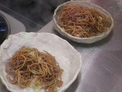 昨日の3組に続き、今日は5の2で実施しました。豚肉をしょうゆベースのタレで煮込むところがポイント。ソース焼きそばとは違う「瀬戸焼きそば」を味わいました。