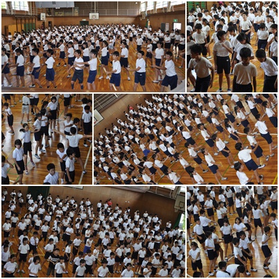 体育館いっぱいの5・6年生、圧巻です。これだけの人数で一つのものを作り上げるのは大変ですが、目標に向かってみんなで力を合わせていきます。