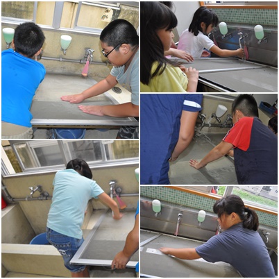 先週の金曜日は1年生教室の窓の桟をきれいに水洗いしてくれました。今日は1階廊下の網戸をきれいに水洗いしてくれました。きれいになった網戸を見るだけで涼しい気分になります。