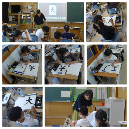 6月28日(火) 毛筆で「大」という課題に取り組んでいました。 左払いに右払い...