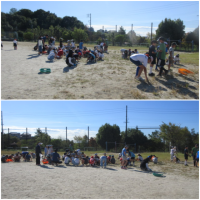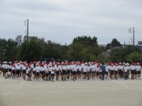 1・2年生が運動会の練習をしていました。今日は、隊形移動の練習です。2列から円に...