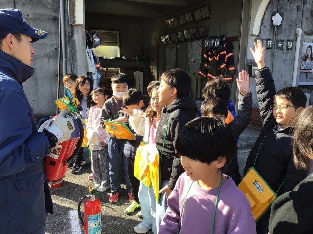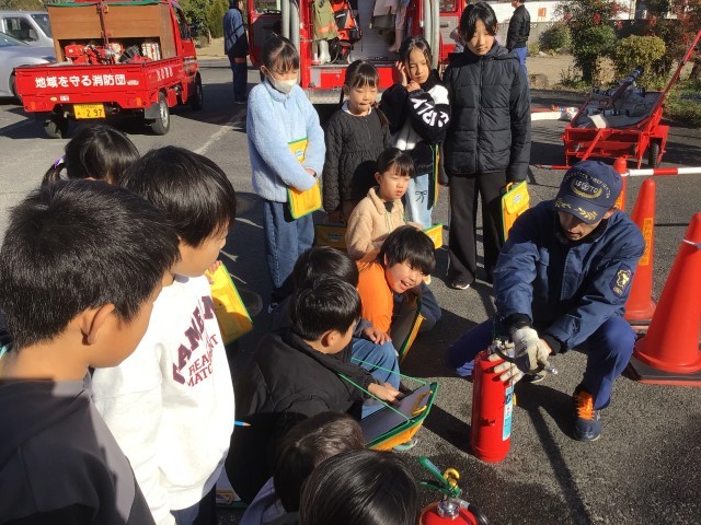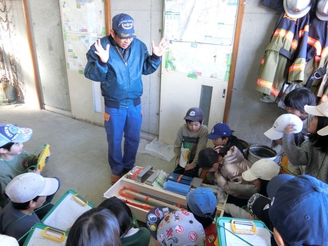 今日は、3年生が消防団の方にお世話になりました。