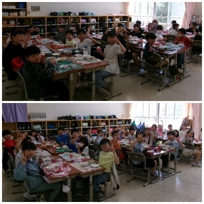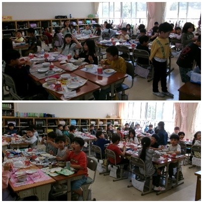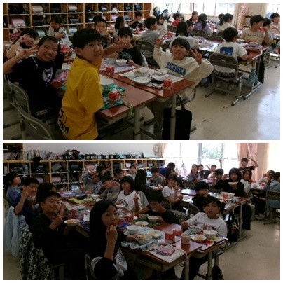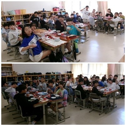 今日から2年生以上は給食が始まりました。今日のメインはマーボー豆腐。デザートにゼリーも付きました。
