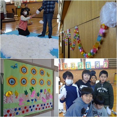 校内には各学年が掲示板に卒業に向けた飾りつけを行っています。