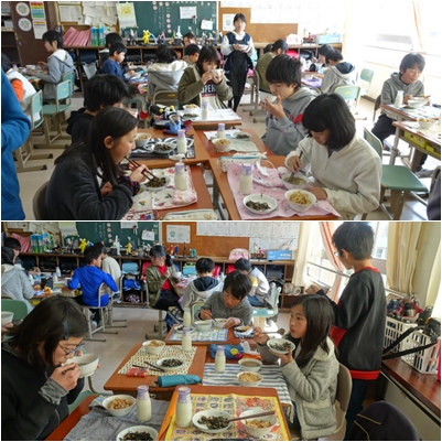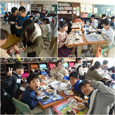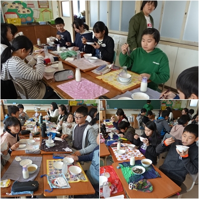 白みそ汁、千草和え、とりめし、牛乳でした。