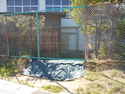 東館周りと、改築工事中に通用口にしていたフェンスの補修工事を連休中にしていただきました。