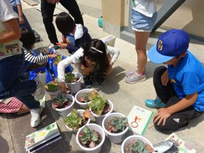 理科の授業で青虫の観察をしました。