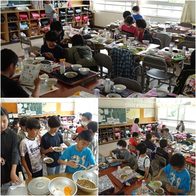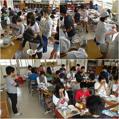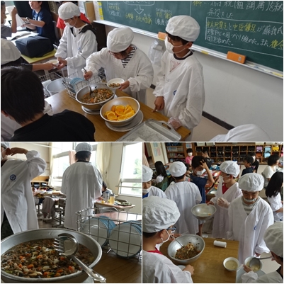 洋風団子汁、スタミナ丼、ごはん、牛乳、オレンジでした。