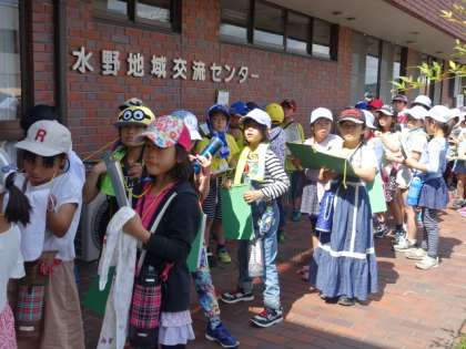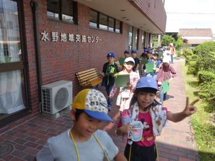 まずは交流センターと保育園。この後、給食センター、中学校、指紋公園へと回ります。