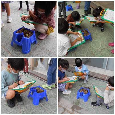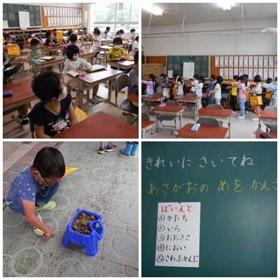 教室で観察のポイントを聞いた後、外に出るときは授業中なので並んで静かに移動します。