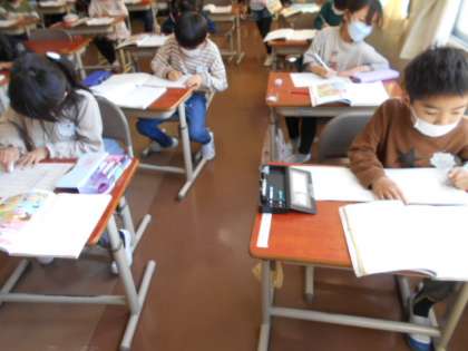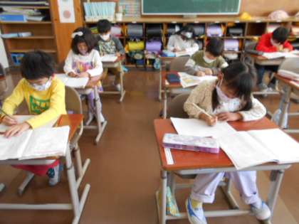 1年生のまとめで、繰り上がり、繰り下がりのある計算問題をしていました。