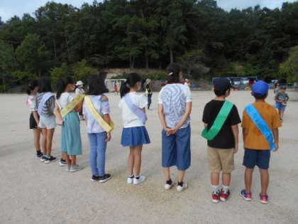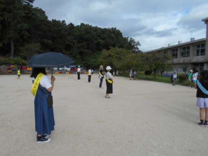 今日はPTA広報部委員の皆さんと一緒に、児童会生活委員があいさつ運動を行いました。