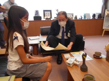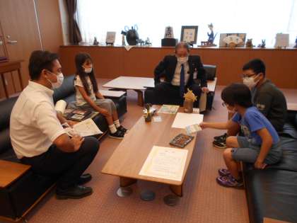 全国こども陶芸展inかさま(茨城県)の公募展で特別賞等を受賞したことを、市長さんに報告しました。