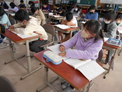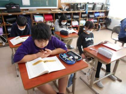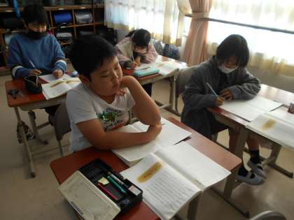 説明文の朗読を聞き、不思議に思ったこと、初めてわかったことなどをノートに書きだしました。