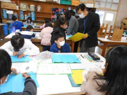 色画用紙にいくつかの窓を描き、切り抜いて扉が開くようにしています。