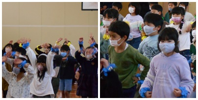 2年生は、「ダンスホール」の軽快なリズムに合わせ、のりのりで体いっぱいに表現しました。