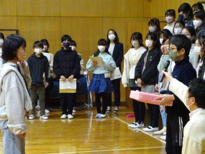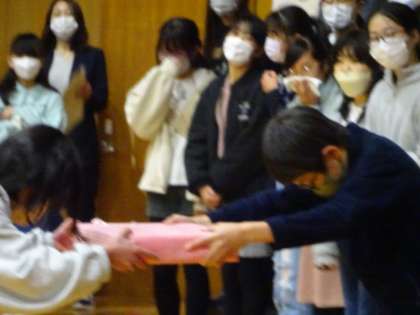 そして、今度は6年生からお返しのプレゼントが渡されました。