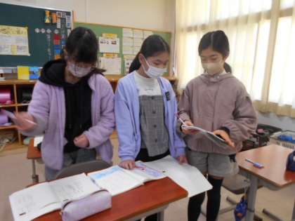 場面の様子を表す言葉などに着目して、女の子の様子や気持ちの変化を考え、友達と伝え合っていました。