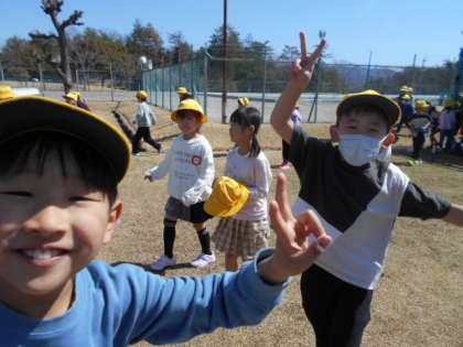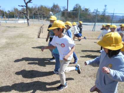 広い芝生広場が空いていたので、鬼ごっこや、だるまさんが転んだをして遊びました。
